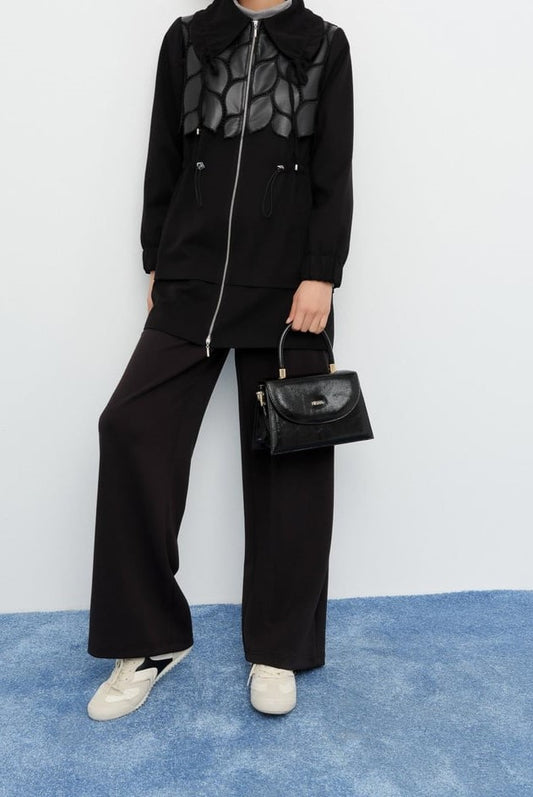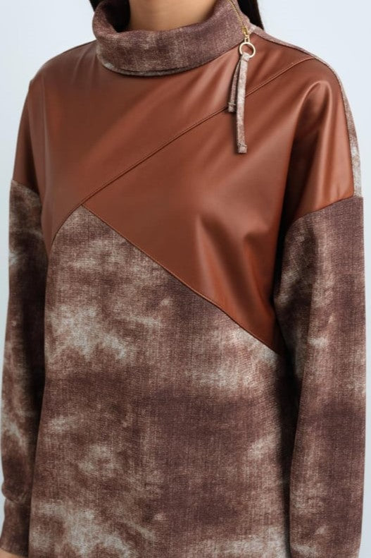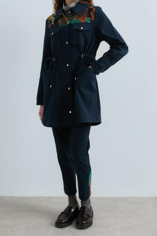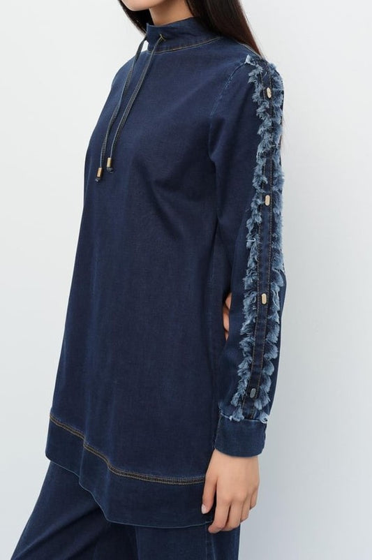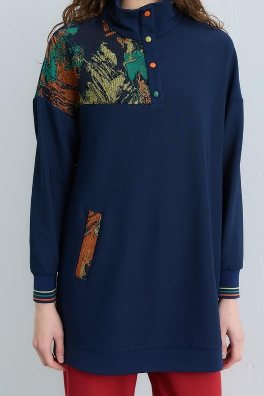 Sweat Col Montant Garniture Jacquard Bleu Marine