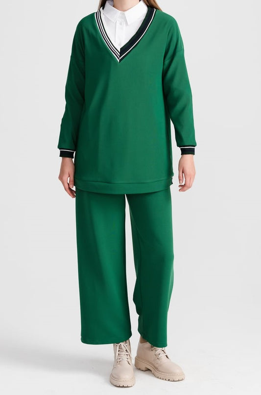 Sweat Côtelé Détaillé Vert Benetton