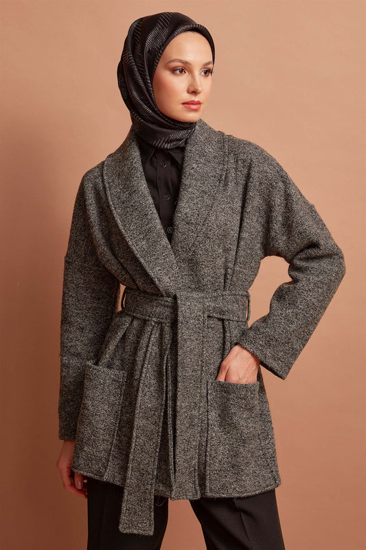 Veste En Laine à Double Boutonnage Avec Poche Et Ceinture