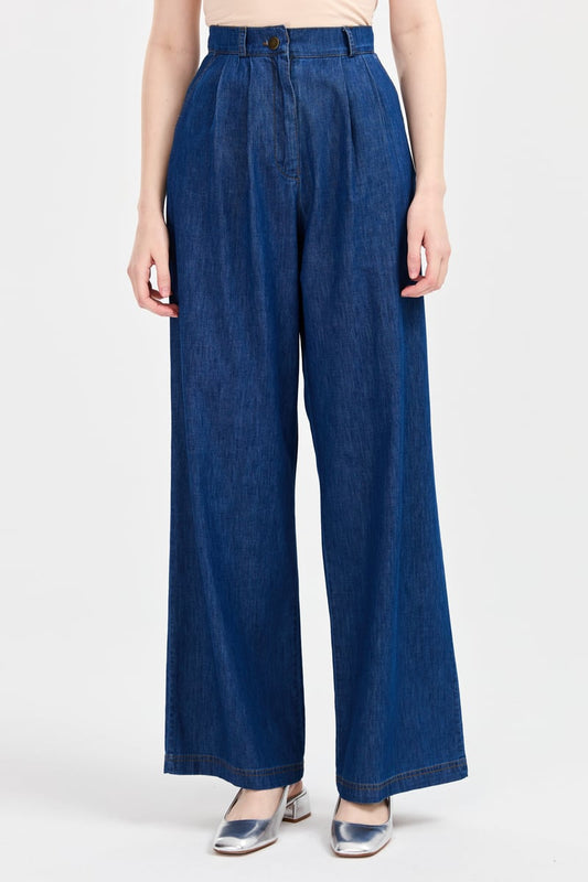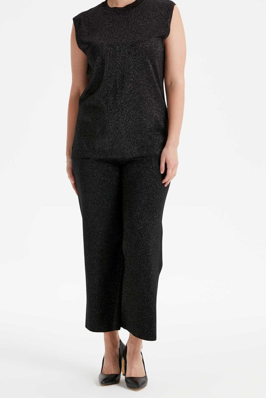 Pantalon bling bling à jambes larges et élastiques à la taille