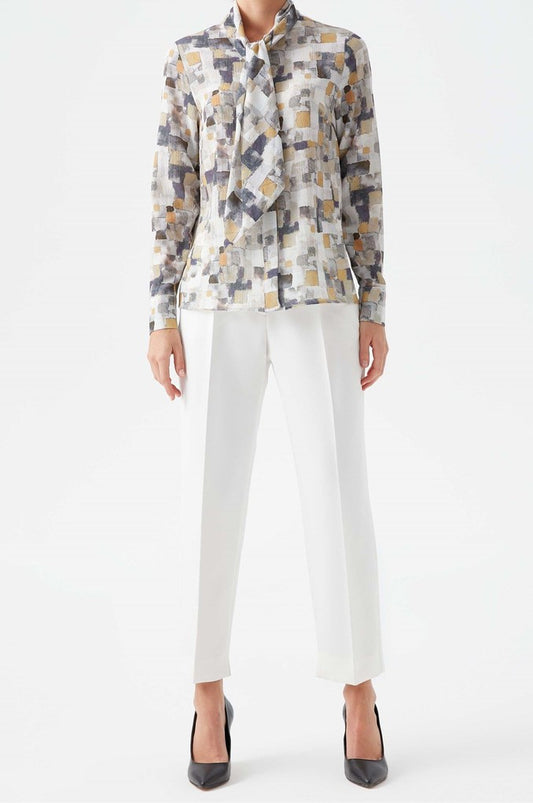 Chemise à Motif Carré Col Foulard - Moutarde