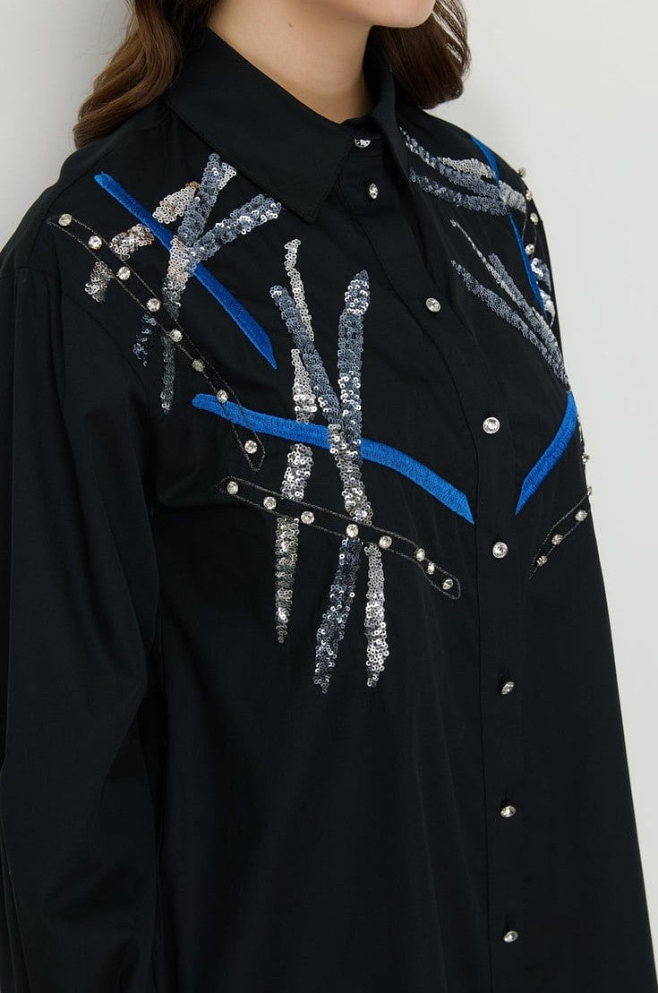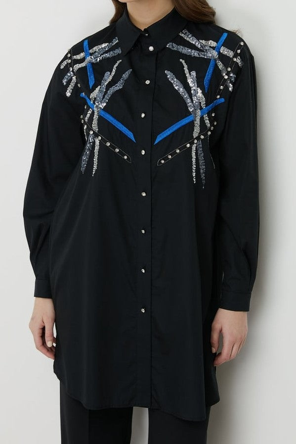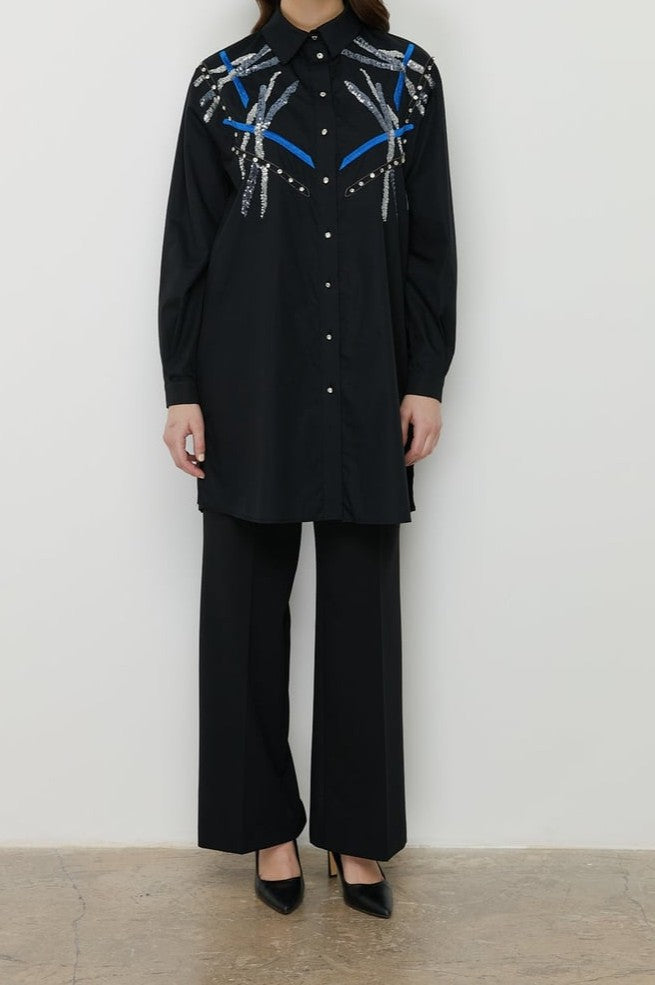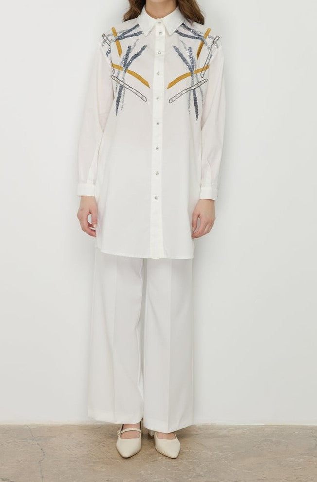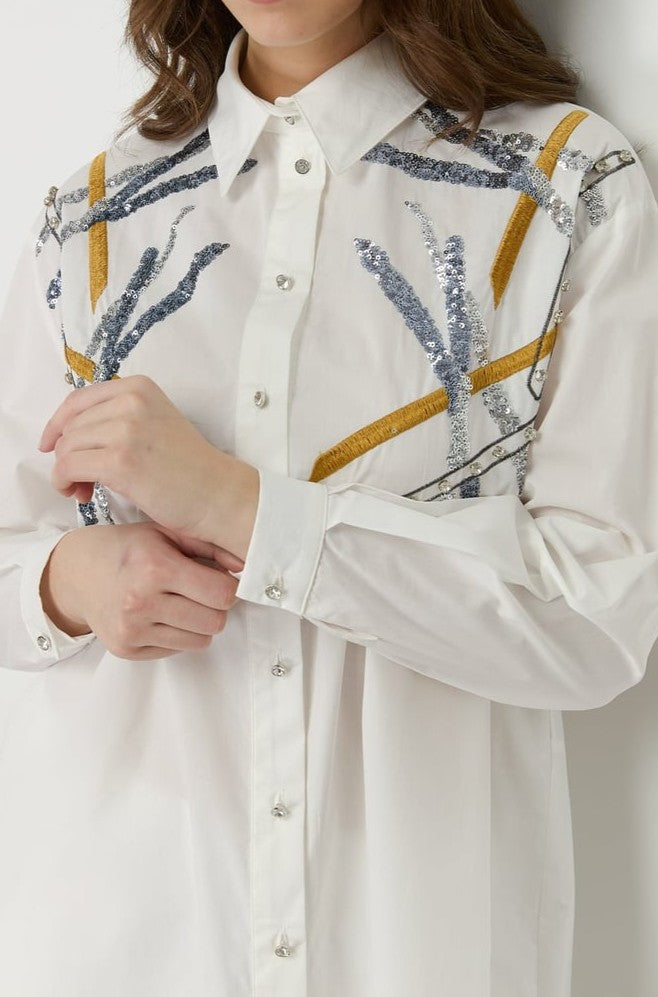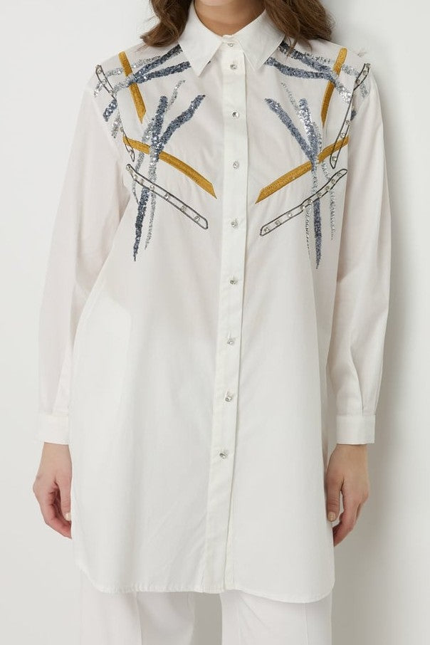 Tunique en popeline brodée aux épaules